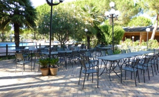 un Ristorante-Pizzeria-Bar davanti alle piscine con forno a legna